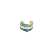 Eden's Parting Waters Ring is crafted from 18K gold-plated stainless steel with blue and turquoise enamel detailing. It comes in US size 6.5 and offers slight adjustability.