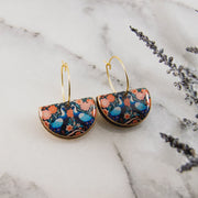Stylish and dramatic, these sweet earrings are a perfect daily accessory! Featuring a vintage inspired peacock and flower illustration, rendered in shades of deep blue, pink, and coral. Made from sustainably sourced North American hardwood and finished with soy-based, BPA/VOC free resin, these vibrant earrings will bring joy and brightness to any wardrobe. Gold fill hoop ear wires.