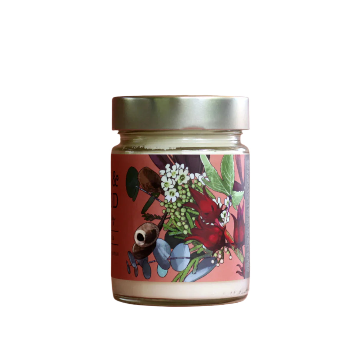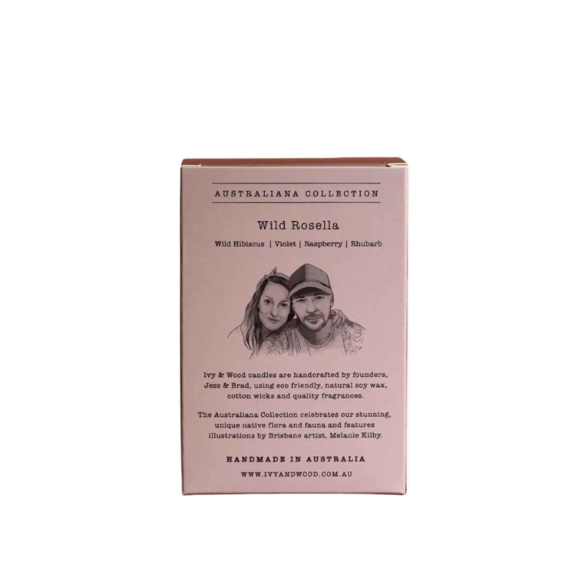 Reminiscent of Grandma's homemade Rosella Jam, this scent is equal parts tart and sweet, with bold notes of Wild Rosella (Wild Hibiscus), Rhubarb and Raspberry and a hint of Violet.