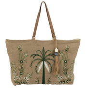 • Generous size, perfect for travel or everyday use • Long handles for comfortable wear • Secure zip closure • Beautiful bead and jute tassel • Intricate palm design embroidery • Lovingly handmade in India