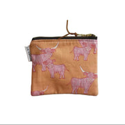 Sweet and small coin purse or pouch! Fits a chapstick, money, jewelry and more! It has a sturdy ykk metal zipper with an adorable leather frindge tie on the zipper pull.
