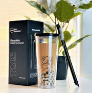 14mm diameter wide-mouth plastic straw with angled tip and stopper is the perfect size to enjoy your bubble tea and prevents the straw from falling out. This reusable bubble tea cup set comes with straw cleaner to help keep your straw nice and clean.
