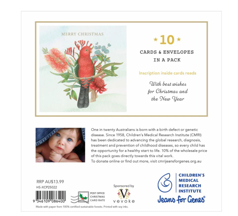 Send heartfelt holiday wishes with the elegant Floral King Parrot Christmas Card Wallet, designed in Australia and featuring 10 beautifully illustrated charity Christmas cards with matching envelopes. Each card is crafted to spread festive joy while supporting an important cause.