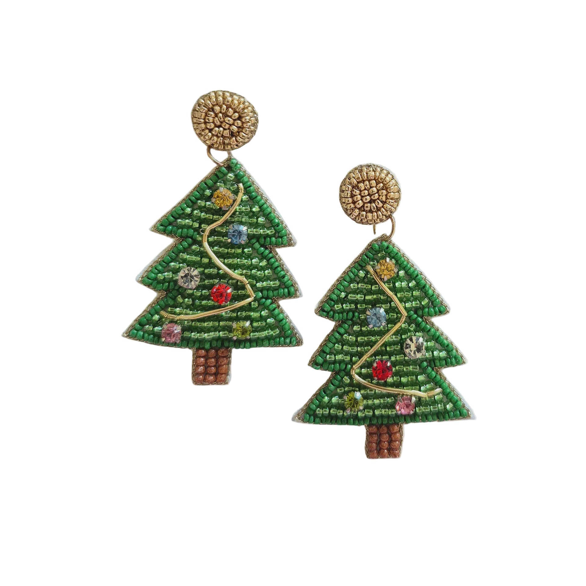 Increase quantity for Beaded Christmas Earrings - Green Tree