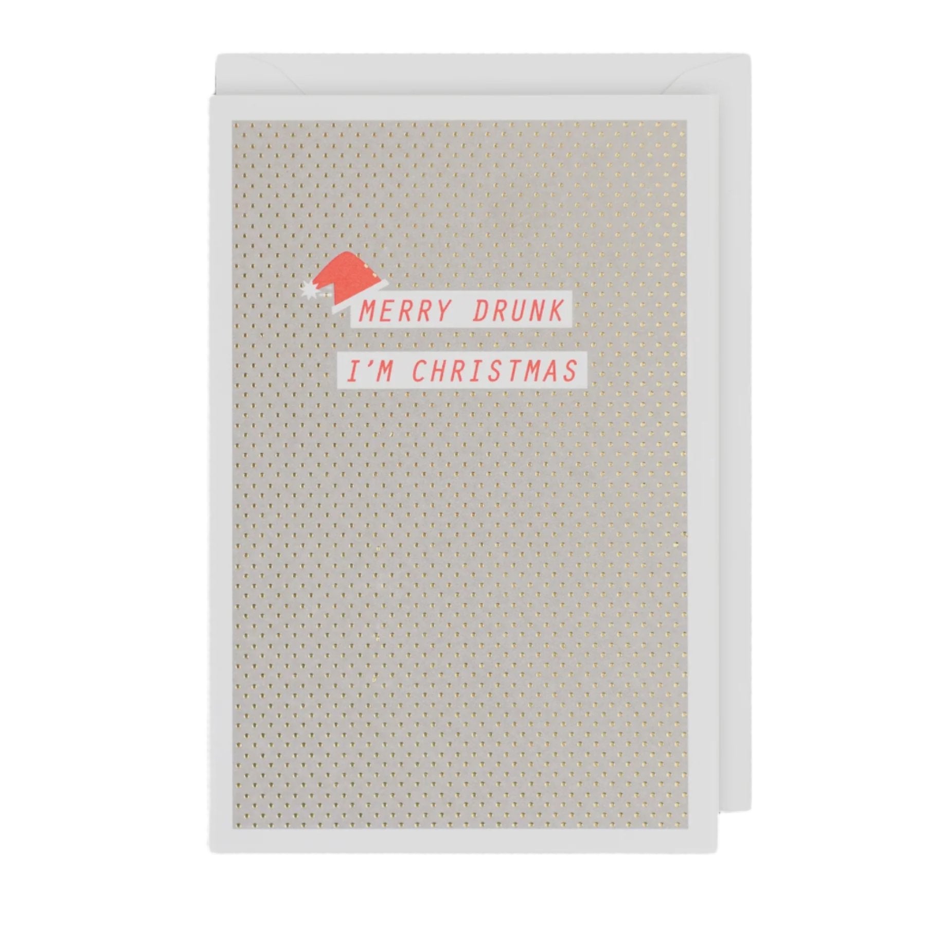 Sometimes words are hard when you've had 8 glasses of eggnog, but you get the idea. This festive card is finished with embossed lettering, gold foil and a flash of neon.