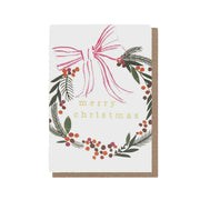 Painted Wreath With Bow Christmas Cards - Pack of 10