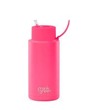Ceramic Reusable Bottle With Straw Lid 1L - Neon Pink