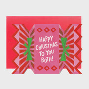Brighten someone’s Christmas with this hand-painted Christmas card featuring a warm illustration of a red and pink Christmas cracker. Carefully die-cut and printed in England, it arrives with a matching red envelope. FSC certified for a thoughtful choice, it carries the heartfelt greeting, "Happy Christmas to you both," to share joyful and supportive wishes this festive season.