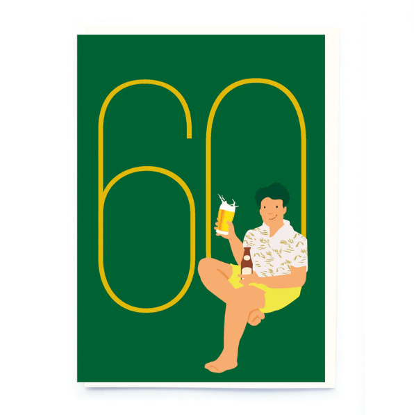 Funky, colourful design with gold foil number. Blank inside and supplied with an off white envelope. Designed and printed in the UK.