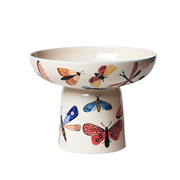 Bring a whimsical, hand-painted touch to your home with the Moth Party Footed Bowl. This ceramic piece is a true artistic accent, featuring a footed bowl shape covered in vibrant, multi-coloured moths rendered by skilled artisans. The varying bright hues and patterns adorn the entire exterior, creating an eye-catching focal point whether filled with fresh fruit or left empty to showcase the incredible craftsmanship. The elevated footed base adds an elegant silhouette. A unique conversation piece that celebrates the beauty of handmade ceramics.
