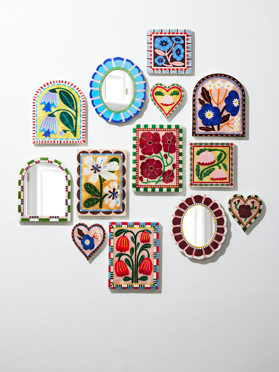Discover Bloom Nouveau: a premium wall art collection blending Art Nouveau inspiration for a joyful contemporary home aesthetic. Featuring Capiz shell tiles and mirrors, each piece showcases vibrant hand-painted florals alongside bold graphic patterns. These versatile artworks combine nature-inspired motifs with contemporary designs, creating stunning displays that elevate any space. Mix and match Bloom Nouveau's tiles and mirrors to transform your walls into a gallery of light-catching, floral elegance.