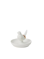 Introducing the delightful Frolic Bird Ring Dish, featuring an adorable bird at its centre. Crafted with meticulous detail from Bone China and finished in a luxurious matte white, this ring dish brings a playful touch of elegance to any bedside table or dresser. Ideal for keeping rings, earrings, and other jewellery pieces organized and within reach, its compact size ensures convenient storage. Beyond its practicality, this ring dish serves as a charming gift for friends and family, adding a touch of whimsy to their daily routine. Treat yourself or a loved one to this endearing accessory that combines functionality with irresistible charm.