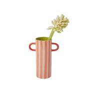 The Griffe Vase Collection. Each vase in this series features unique designs, including hand-painted florals, bold stripes, or vibrant multi-coloured spots. The name "Griffe," German for handles, reflects the dynamic silhouette of these vases, with two solid handles on either side adding an extra design punch! Whether displayed individually or paired together, these vases are perfect for creating a playful vignette on your bookcase, mantel, or shelf, adding a pop of colour and personality to any surface in the house.