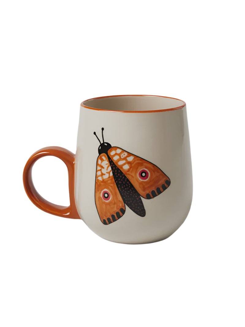 Bring the beauty of nature's unsung creatures to your morning brew with the Moth Party hand painted ceramic mugs, each featuring a vibrantly detailed moth design rendered by skilled artisans using rich glazes and pigments. Sip from the extra-wide, solid coloured handle designed for an exceptionally comfortable grip. Mix and match the vibrant moth designs or collect the whole set of these substantial yet lightweight stoneware mugs to create your own personal menagerie. They're as much decorative works of art as functional cup ware staples that add a touch of the natural world to your daily ritual.