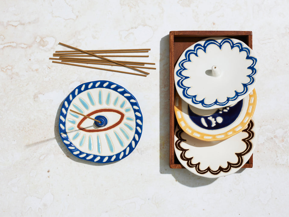 Elevate your space with the Solstice incense burner collection. Featuring three enchanting designs inspired by celestial motifs, these burners blend form and function seamlessly. Adorned with suns, moons, and scalloped edges, they're not just practical they're artful decor pieces that shine even without incense. Perfect for creating a dreamy atmosphere or gifting to a loved one, each burner is thoughtfully sized and priced. For a constant subtle fragrance, try placing an unlit incense stick in the holder. Transform any room into a sensory haven with Solstice.