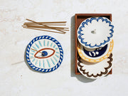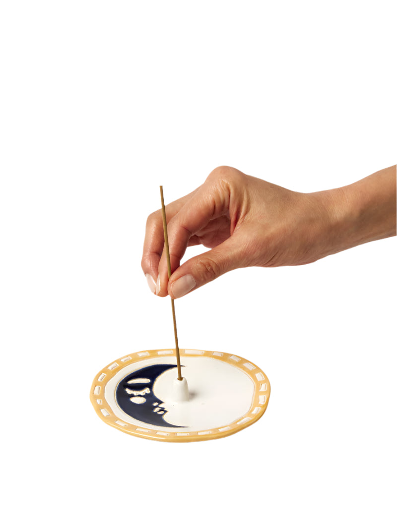 Elevate your space with the Solstice incense burner collection. Featuring three enchanting designs inspired by celestial motifs, these burners blend form and function seamlessly. Adorned with suns, moons, and scalloped edges, they're not just practical they're artful decor pieces that shine even without incense. Perfect for creating a dreamy atmosphere or gifting to a loved one, each burner is thoughtfully sized and priced. For a constant subtle fragrance, try placing an unlit incense stick in the holder. Transform any room into a sensory haven with Solstice.