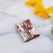 Delightfully vintage inspired, this gorgeous illustration features a scattering of Art Nouveau style red poppies on cream and taupe. Sustainably sourced North American hardwood and finished with non-toxic soy-based, BPA/VOC free resin provide durability, strength and beauty. Handcrafted sterling silver ear wires make these earrings as comfortable as they are elegant. Approximately 2.5 inches long.