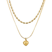 Double Chain Heart Necklace - Gold