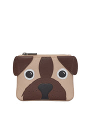 Dog lovers will go mad for our adorable Percy the Pug leather purse. The attention to detail on the front of the purse really captures a dogs features. This soft frappe leather zip top purse with brown accents is compact yet cards will still fit inside and there is still plenty of space left inside. It also has 2 outer back card slots.