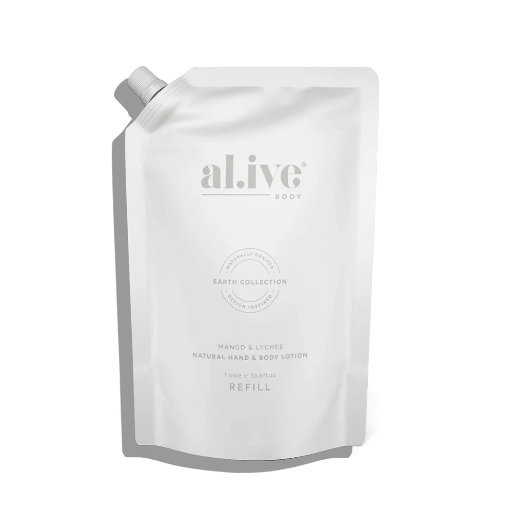 Al.ive Body's 1ltr refill pouches are designed to refill your existing al.ive body bottles whilst helping to reduce the amount of plastic ending up in landfill. These refill pouches use 88% less plastic and refill your 500ml al.ive body bottle twice.