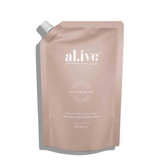 Al.ive Body's 1ltr refill pouches are designed to refill your existing al.ive body bottles whilst helping to reduce the amount of plastic ending up in landfill. These refill pouches use 88% less plastic and refill your 500ml al.ive body bottle twice.