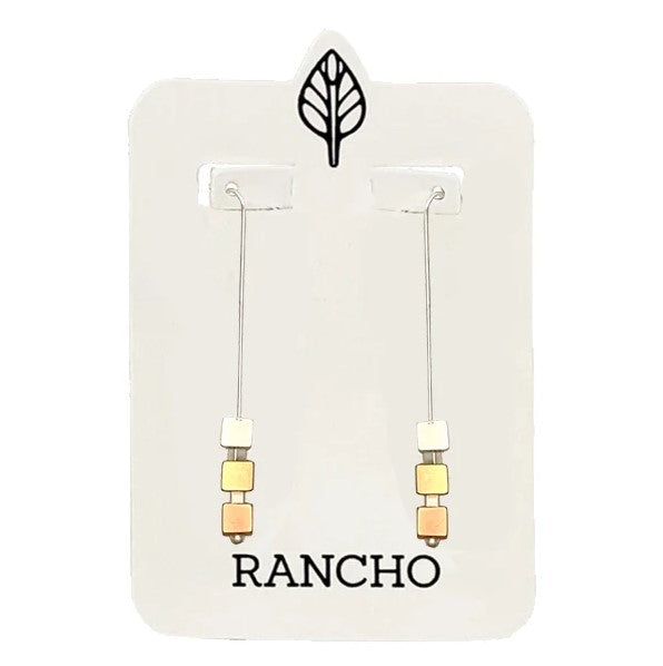 Rose gold, gold, silver cube beads and spacer beads on silver long length straight hook.