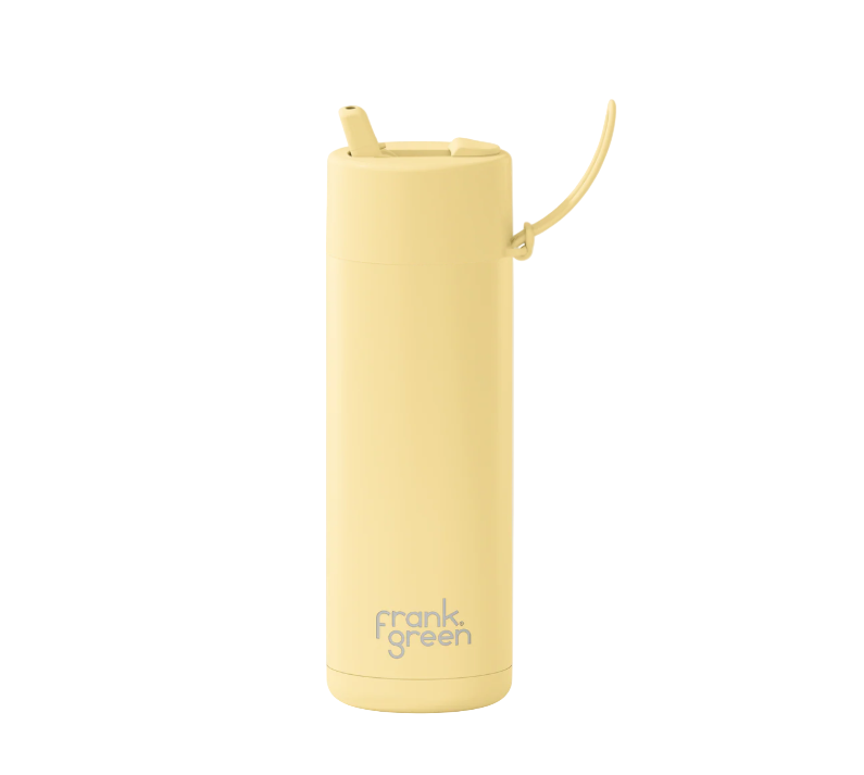 595ml Ceramic Bottle + Flip Straw Lid - Buttermilk