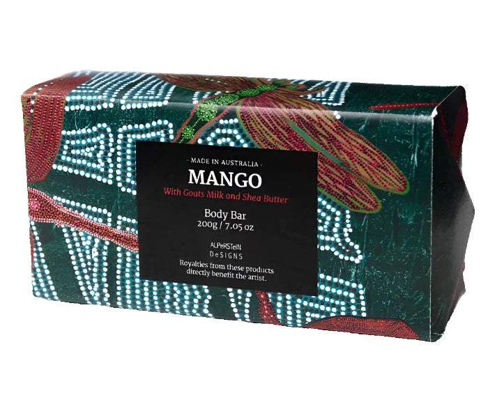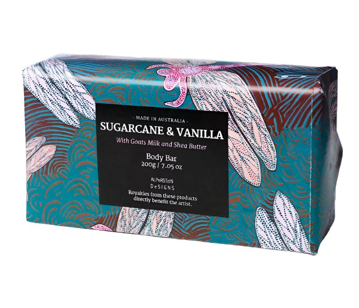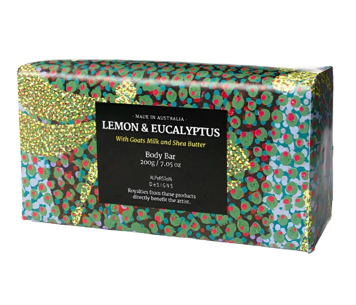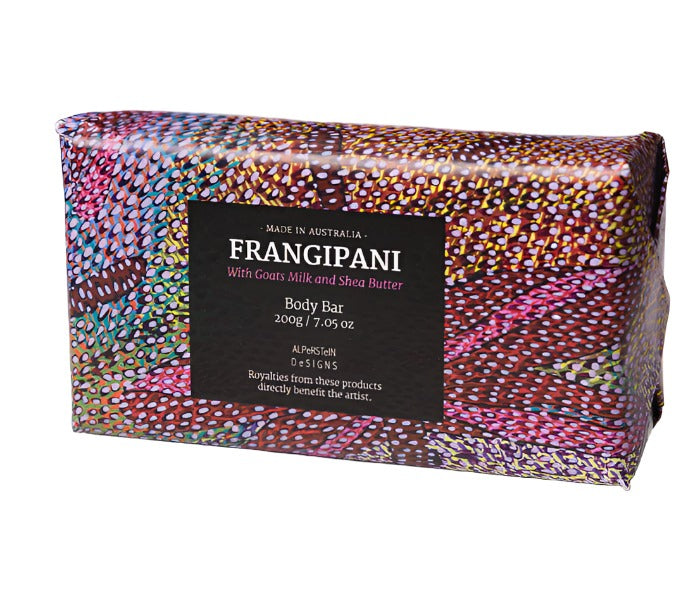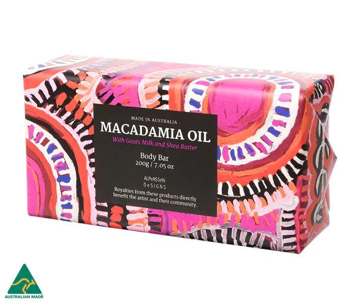 Beautiful Australian Made Soap hand wrapped featuring artwork by Aboriginal Australian artists from North Queensland and Yuendumu, Australia.