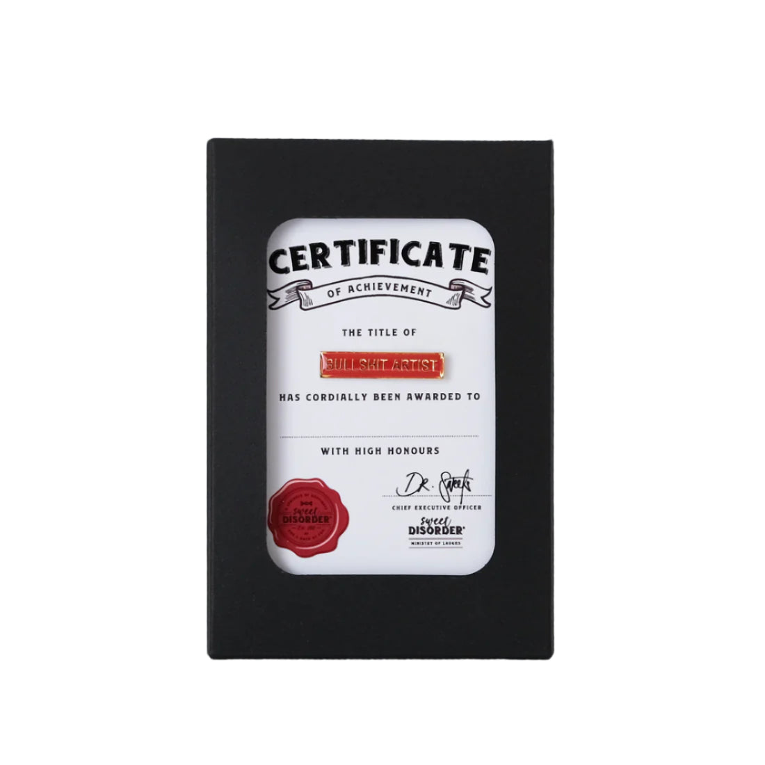 This retro enamel badge and embossed certificate is perfect for the person who excels at spinning stories, dodging blame, and keeping a straight face through it all.