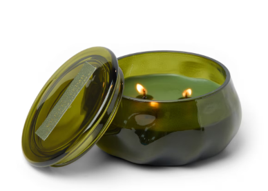 Basalt Green 10z Organic Shaped Tinted Glass Candle - Wild Fig & Cedar