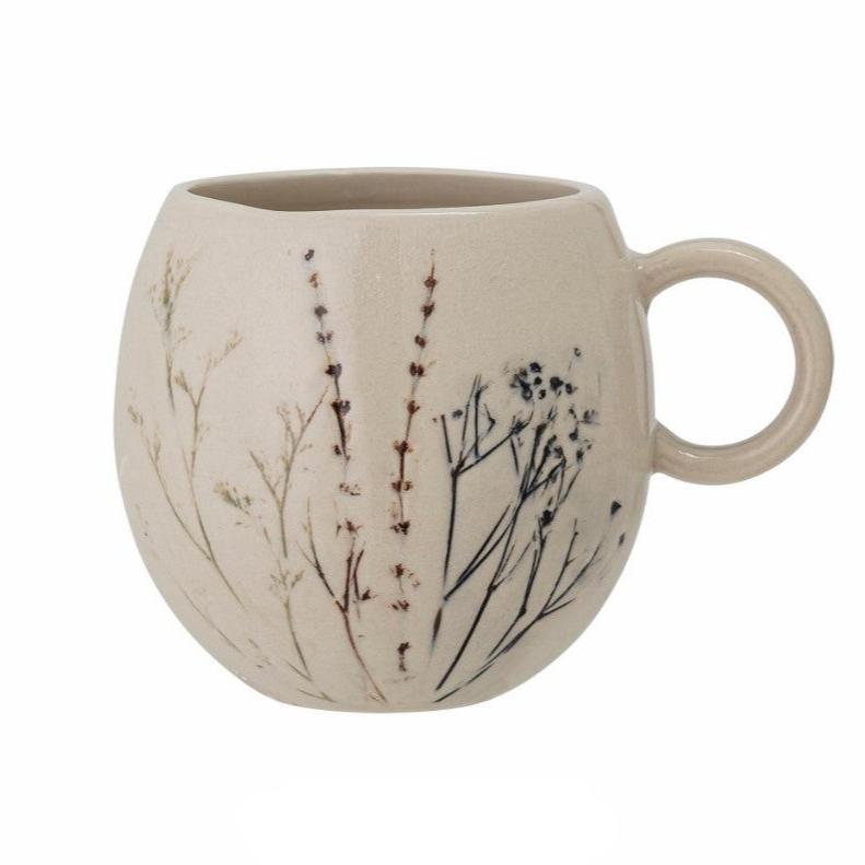 The Bea Mug from Bloomingville is made of stoneware, featuring a delicate hand-painted floral motif printed on its crackled glaze. The hand-painted details ensure that each product in the series is unique. Holds 250 ml. The mug is dishwasher safe.