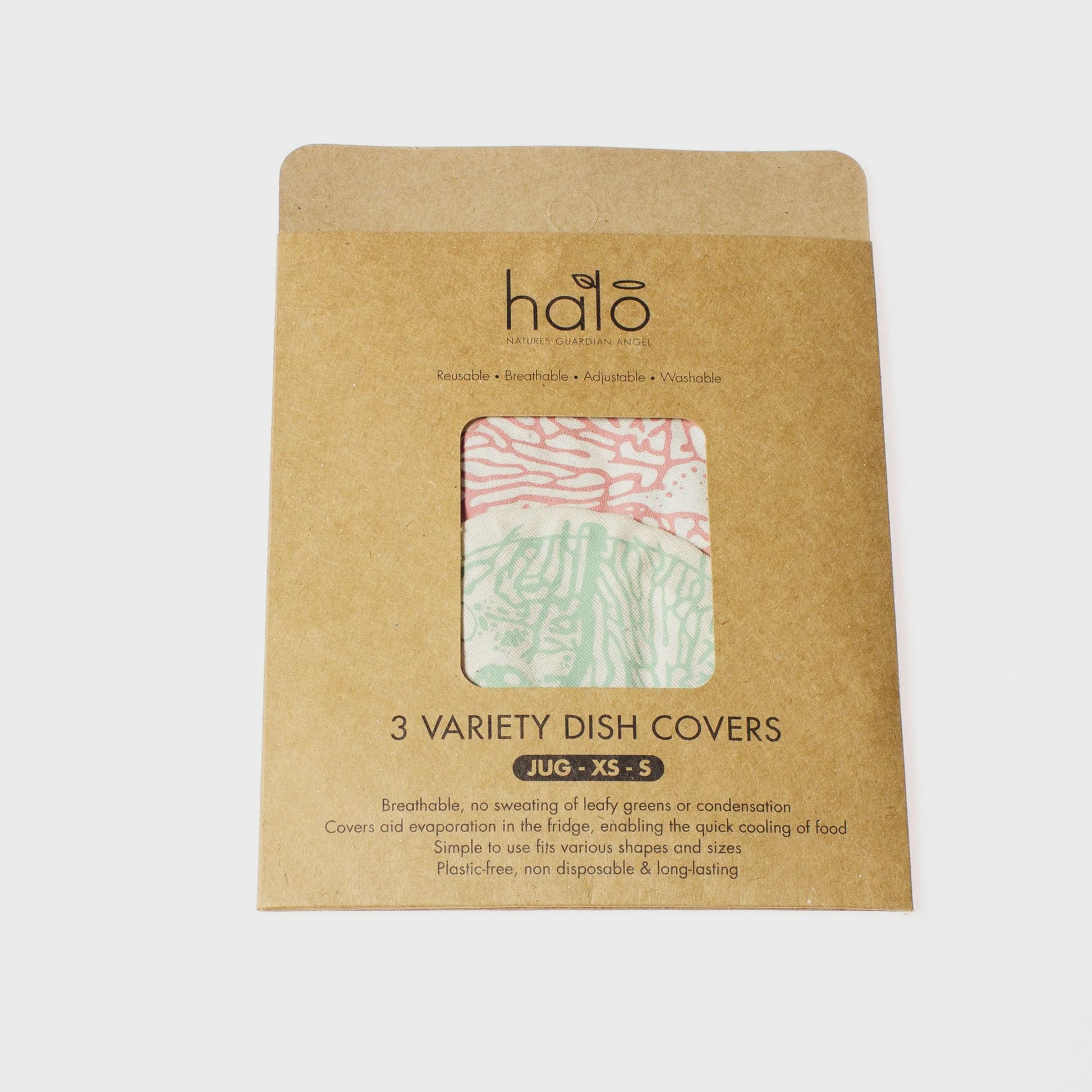 Includes a jug cover, an extra small that fits on a noodle bowl and a small size which gets used continually during the week for serving and ongoing dishes. Super handy for sauces, snack bowls and leftovers.