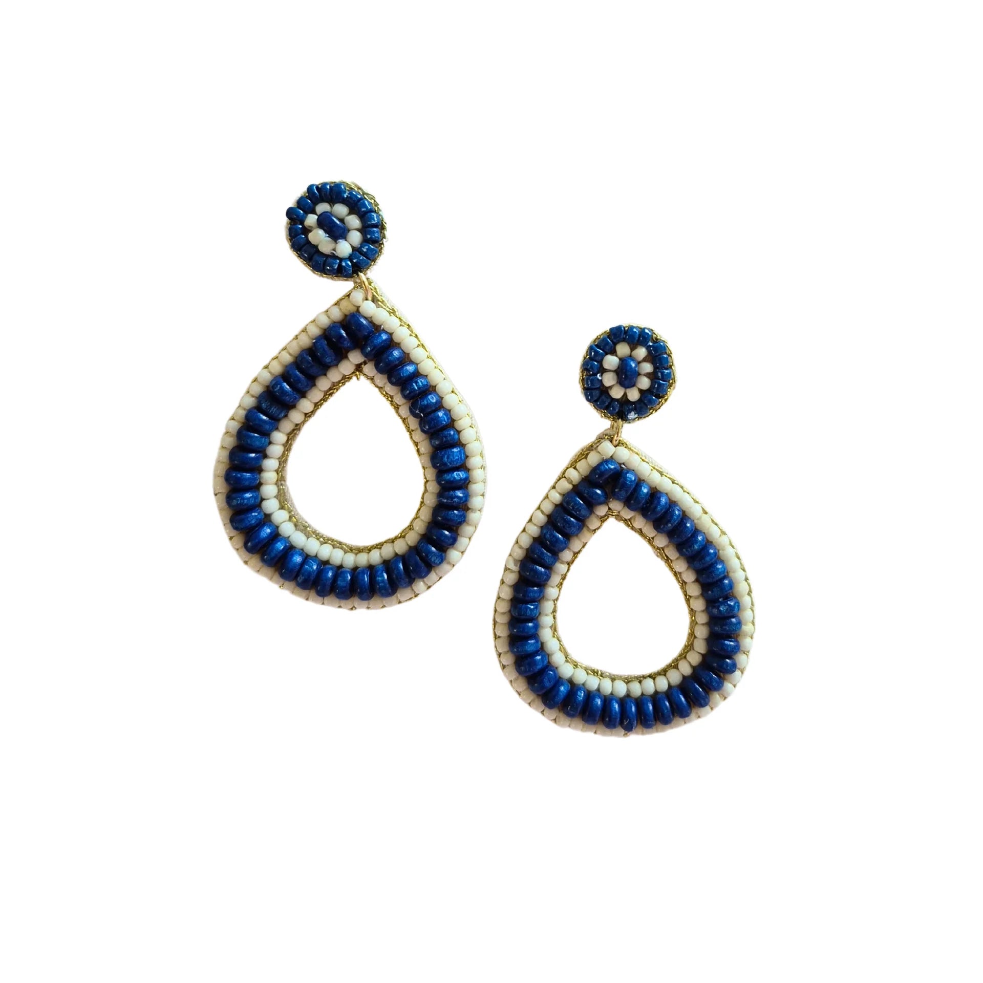 Beaded Teardrop Earrings - Navy