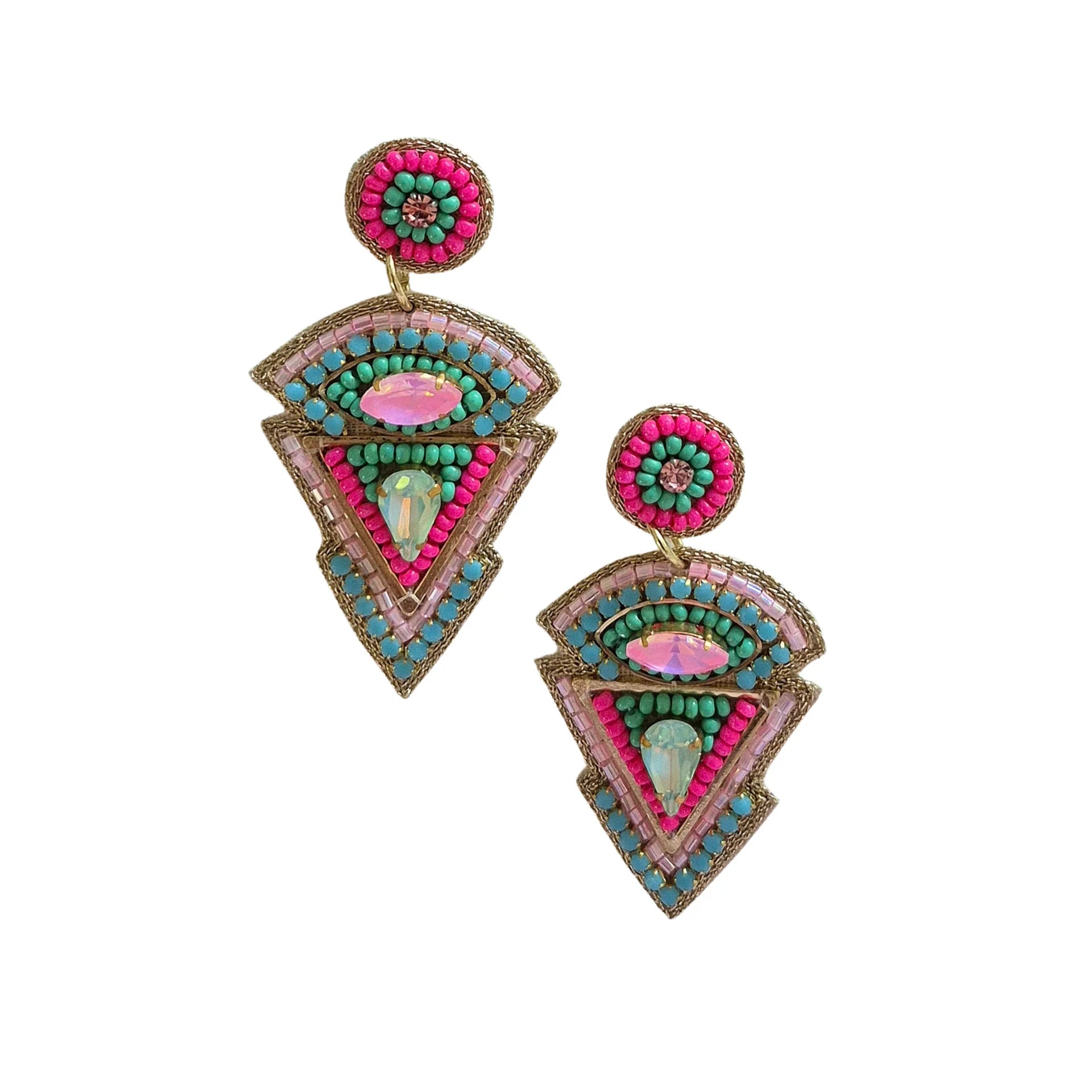 Beaded Triangle Statement Earrings - Pink & Blue