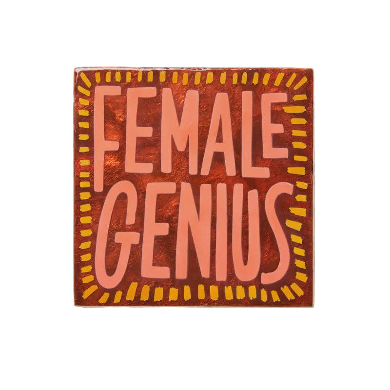 Declare it loud and proud. The Female Genius tile is hand-painted in punchy coral and tangerine tones with bold typography on capiz shell. A declaration, a tribute, a mood. We love this as a gift for a baby girls nursery too.