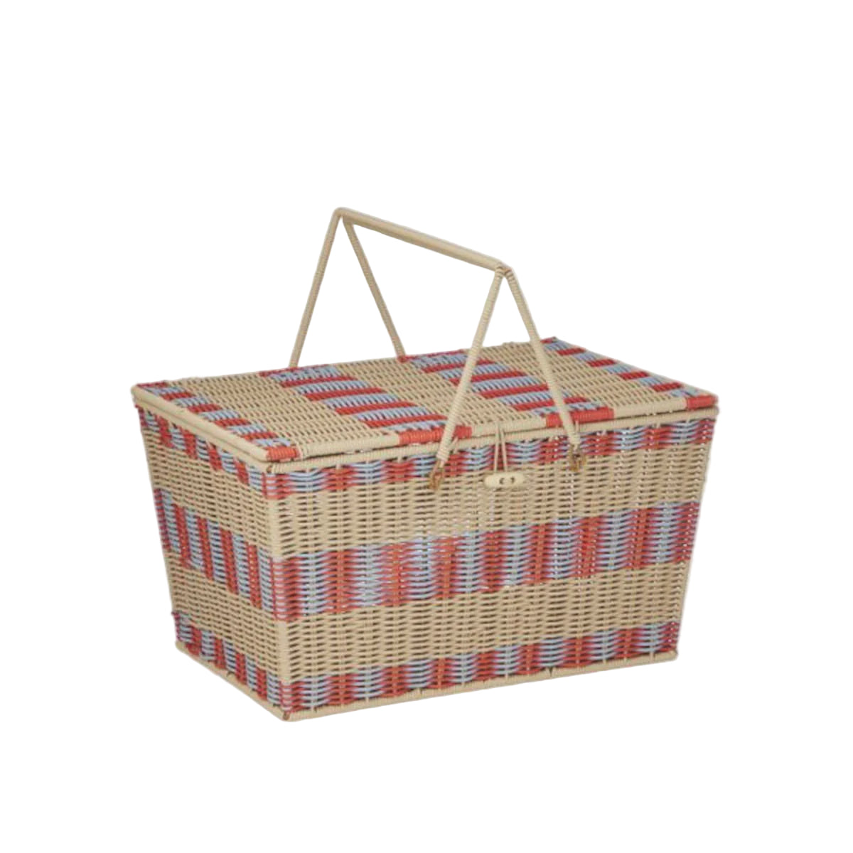 The Capri Woven Basket in Red and Blue adds a pop of color to your storage solutions. Perfect for organizing items around the home, serving as a decorative accent, or to come out with you on picnics. Its sturdy design ensures both functionality and style.