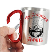 The bold “The Adventure Awaits” graphic paired with the striking red carabiner handle adds a fun, motivational touch to your everyday essentials. Clip it onto your backpack, belt loop, or travel gear for ultimate convenience. Lightweight yet sturdy, it’s made for hot coffee at sunrise or a refreshing sip by the campfire.