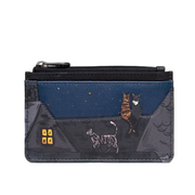 Card Holder With Zip - Stargazing Cats, Black