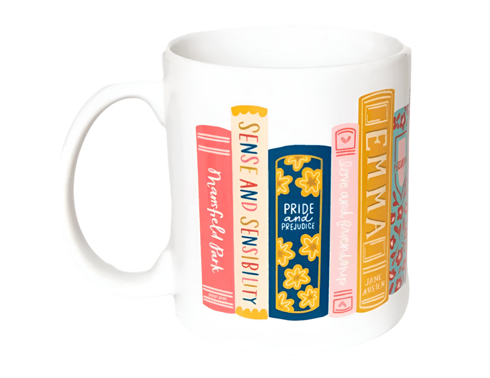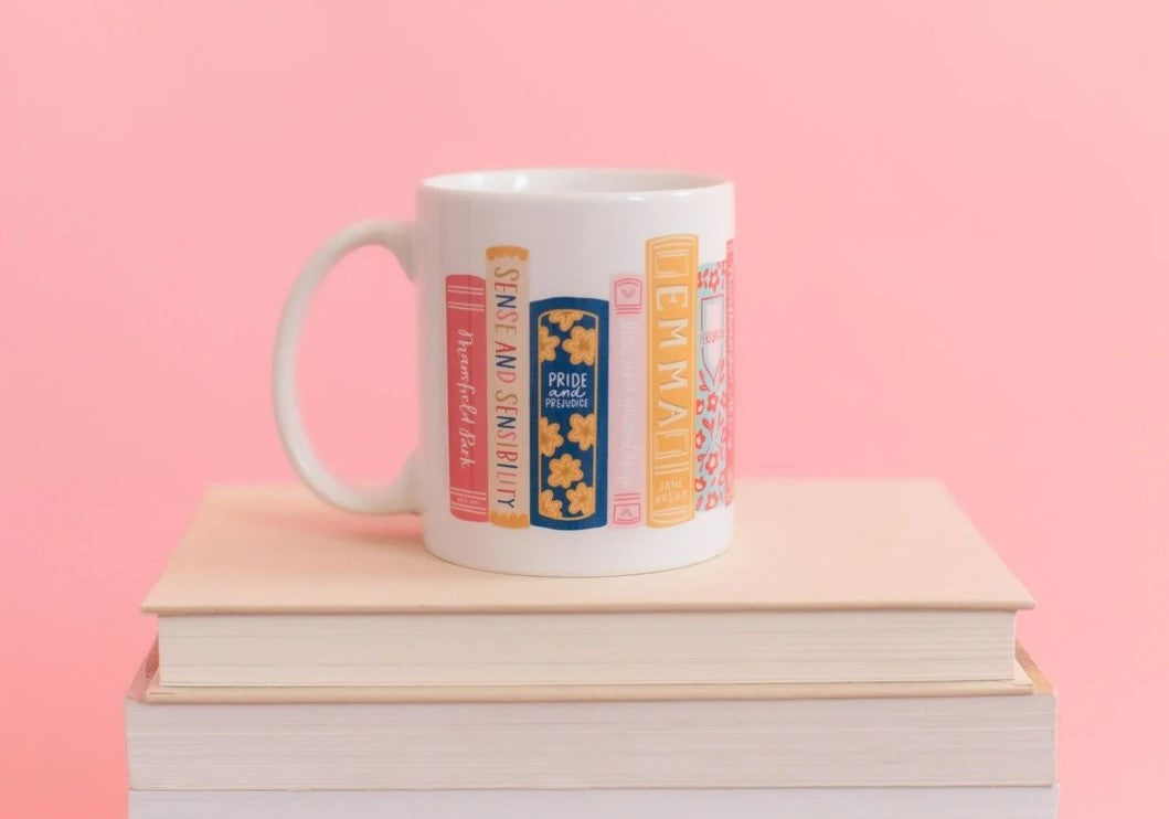 Start your day with a touch of literary charm with the Classic Books Mug, featuring a row of hand-illustrated classic titles. The perfect companion for your morning coffee or tea, this mug also makes a thoughtful gift for book lovers, teachers, or anyone who appreciates a good read with their brew. Featuring favorite novels such as Anne of Green Gables, Little Women, Pride and Prejudice, Wizard of Oz, The Great Gatsy and more, this mug is perfect for any bookworm or avid reader!