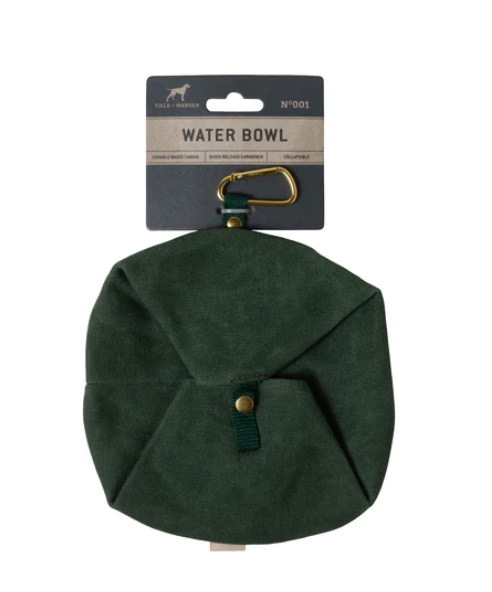 Traveling with your best furry friend just got way easier thanks to the Collapsible Dog Bowl from Field + Wander. This water bowl is easy to transport by a quick-release carabiner. Fold down and quickly set up when a drink of water is needed. This collapsible bowl is lightweight but durable with its waxed canvas exterior and waterproof black lining interior.