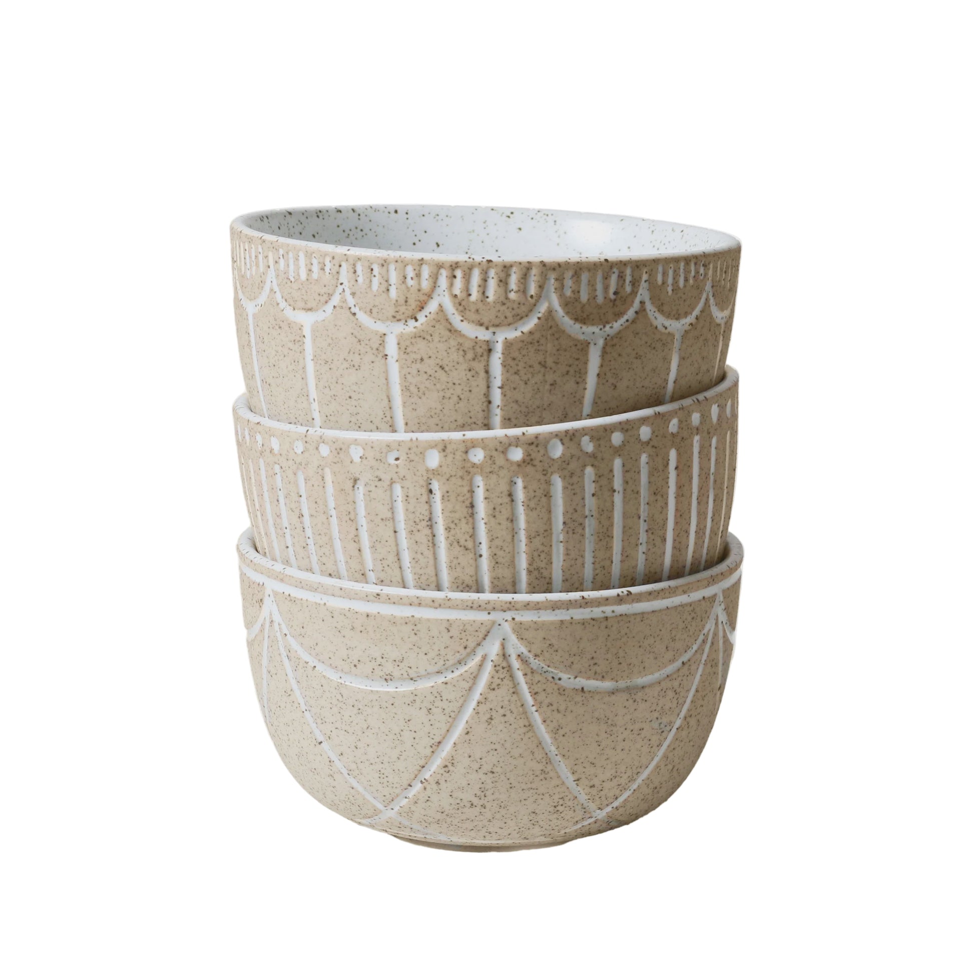 Condiment Bowls 3pk with Etching - Mixed Natural Entertainer