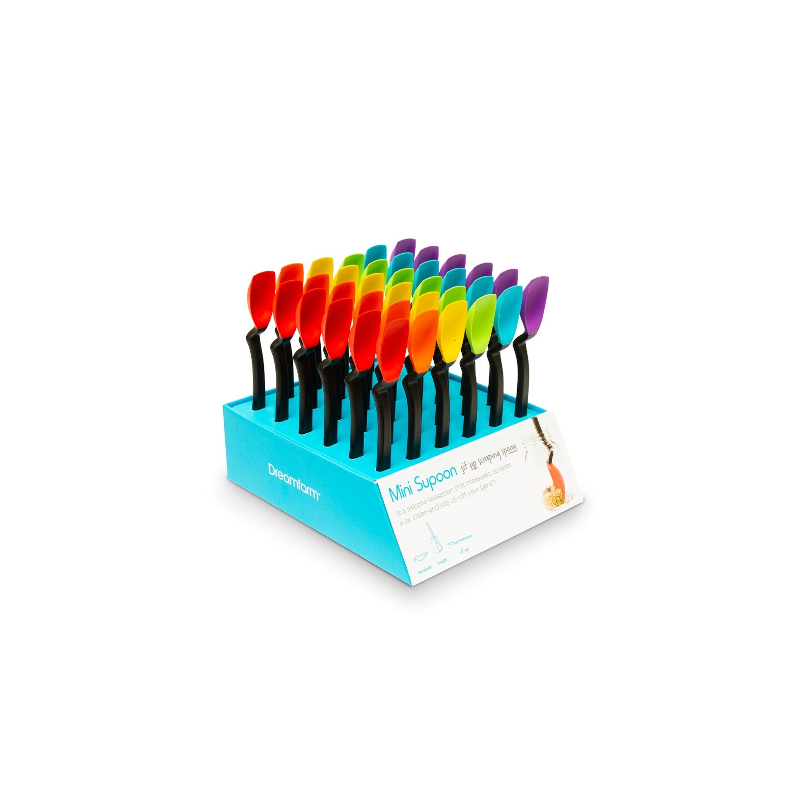 Dreamfarm Mini Supoon is a silicone teaspoon that scrapes every little bit from your jars. Keep benches and counters clean and food hygienic thanks to the unique handle design which sits your spoon up and off your bench.