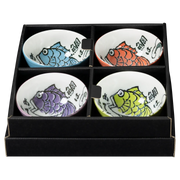 This gift set contains four small rice bowls, packaged in an elegant black gift box with Omotenashi branding. These ceramic bowls prominently features the ‘Tai’ (Sea bream) in an Etegami style, with brightly coloured outers. Tai are seen as a symbol of good luck, as their name sounds similar to ‘Omedetai’ (Lucky). Tai is often served on celebratory occasions in Japan, and the artwork on these bowls are a great way to channel that luck for any meal or occasion. Being dishwasher and microwave safe, these are durable and easy to care for. Designed and made in Japan.