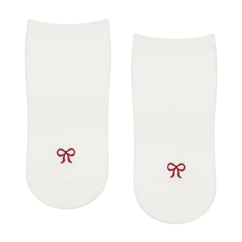 Gift box includes our Classic Low Rise Grip Socks in 'Cherry Pop', 'Whimsy Bow White' and 'Gumnut'.