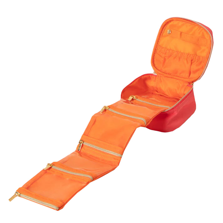 Soft and squashable, make a splash on your next holiday with the Lipstick Jewellery Cube. Bright and fun, the lipstick pink outer opens to reveal a vibrant orange lining.