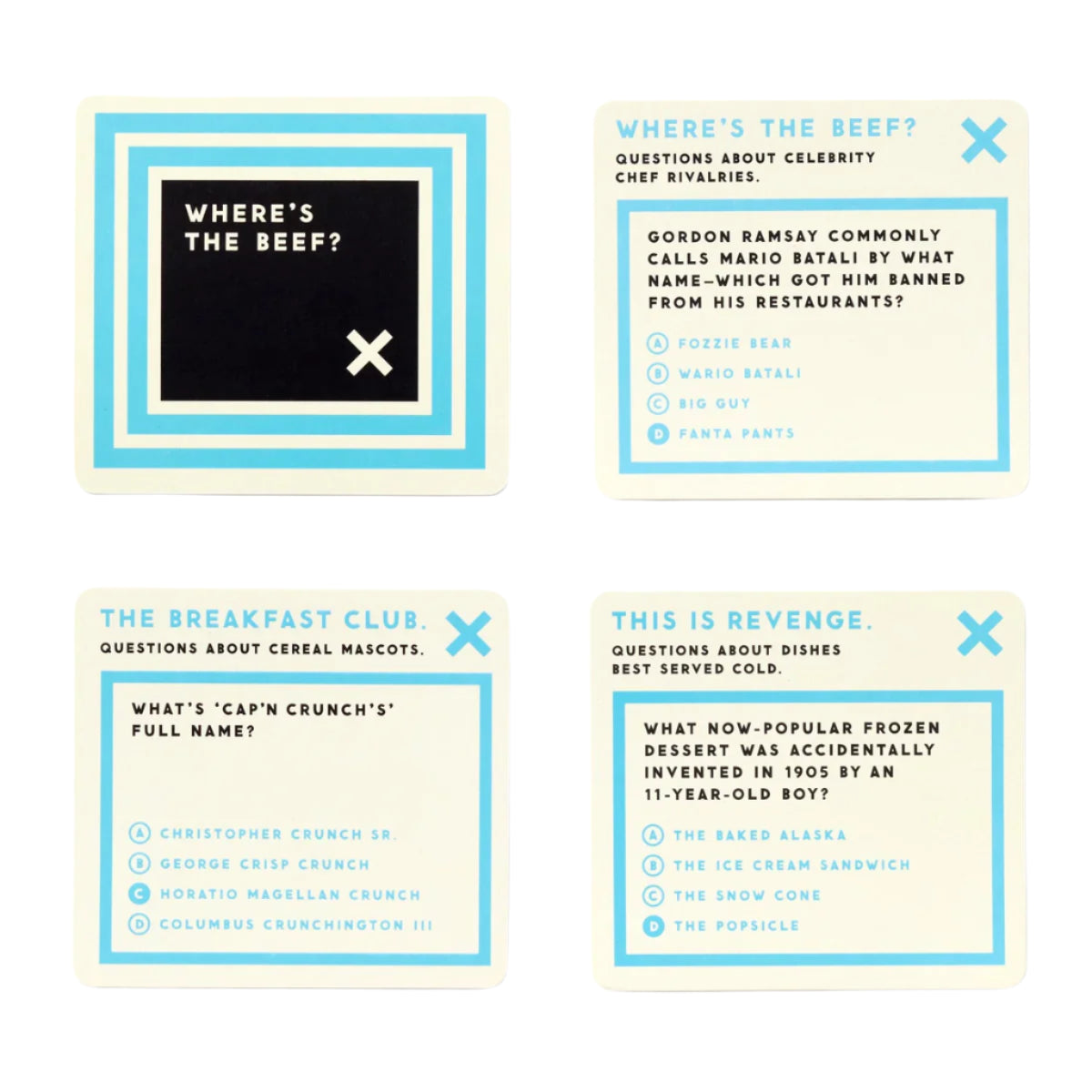 - Includes 200 unique trivia questions to test your random food knowledge (to say the least).
