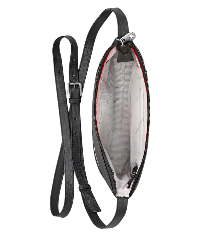 If you love pooches, you’ll love our Bark to Bark leather cross body bag which has been finished in a pebble grain black leather to emphasise the striking appliques on the front. This curious rabble of canine companions feature our favourite four-legged friends such as the Daschund, Pug, Poodle, Chihuahua, Dalmation, Border Collie and Spaniel. Here they sit on top of an old stone wall which adds further detail to this bag. The delicately drawn dogs on the front of this women’s leather cross body handbag stir those feelings we have for our favourite four-legged friends and remind why we love to have them by our side.