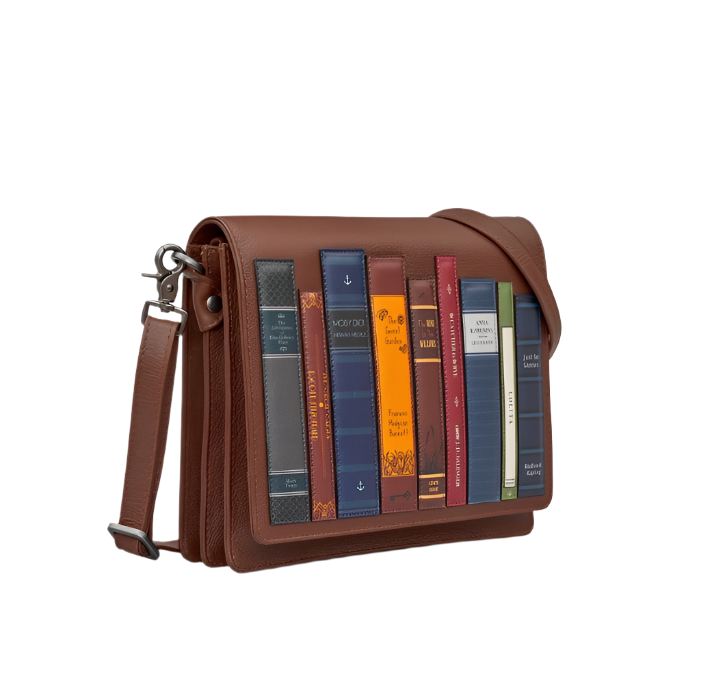 Our flap over cross body bag from our library range is made in soft brown leather and features a selection of literary greats on the front. Each of these books is an individual applique celebrating some of the most famous authors. Inside this across body style there is all the space required for your essentials and more.
