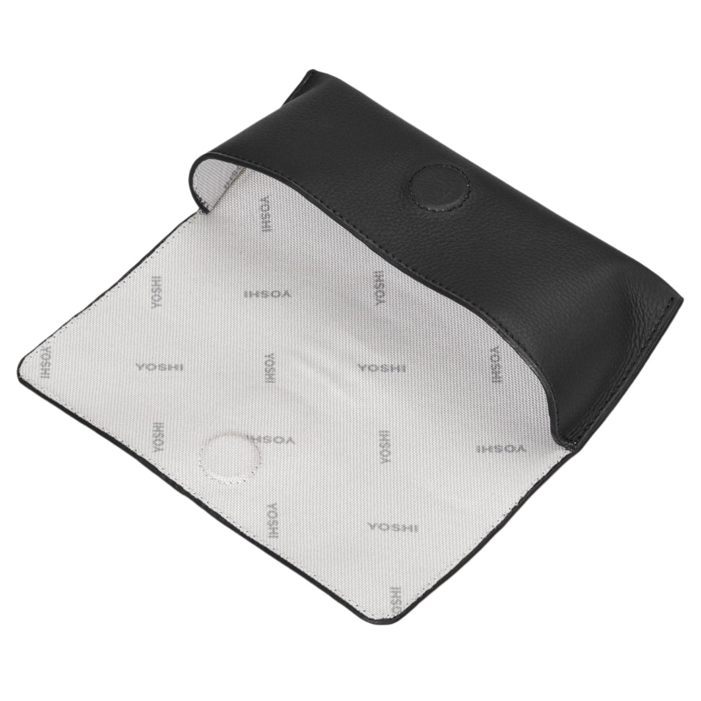 Protect your glasses or sunglasses in style with this leather glasses case which has been produced in a black leather to highlight the colourful appliques on the front. This curious rabble of canine companions feature your favourite four-legged friends such as the Daschund, Pug, Poodle, Chihuahua, Dalmation, Border Collie and Spaniel. Here they sit on top of an old stone wall which adds further detail to this flap over leather glasses case. This pooch themed glasses case is fastened with a magnetic fastener.