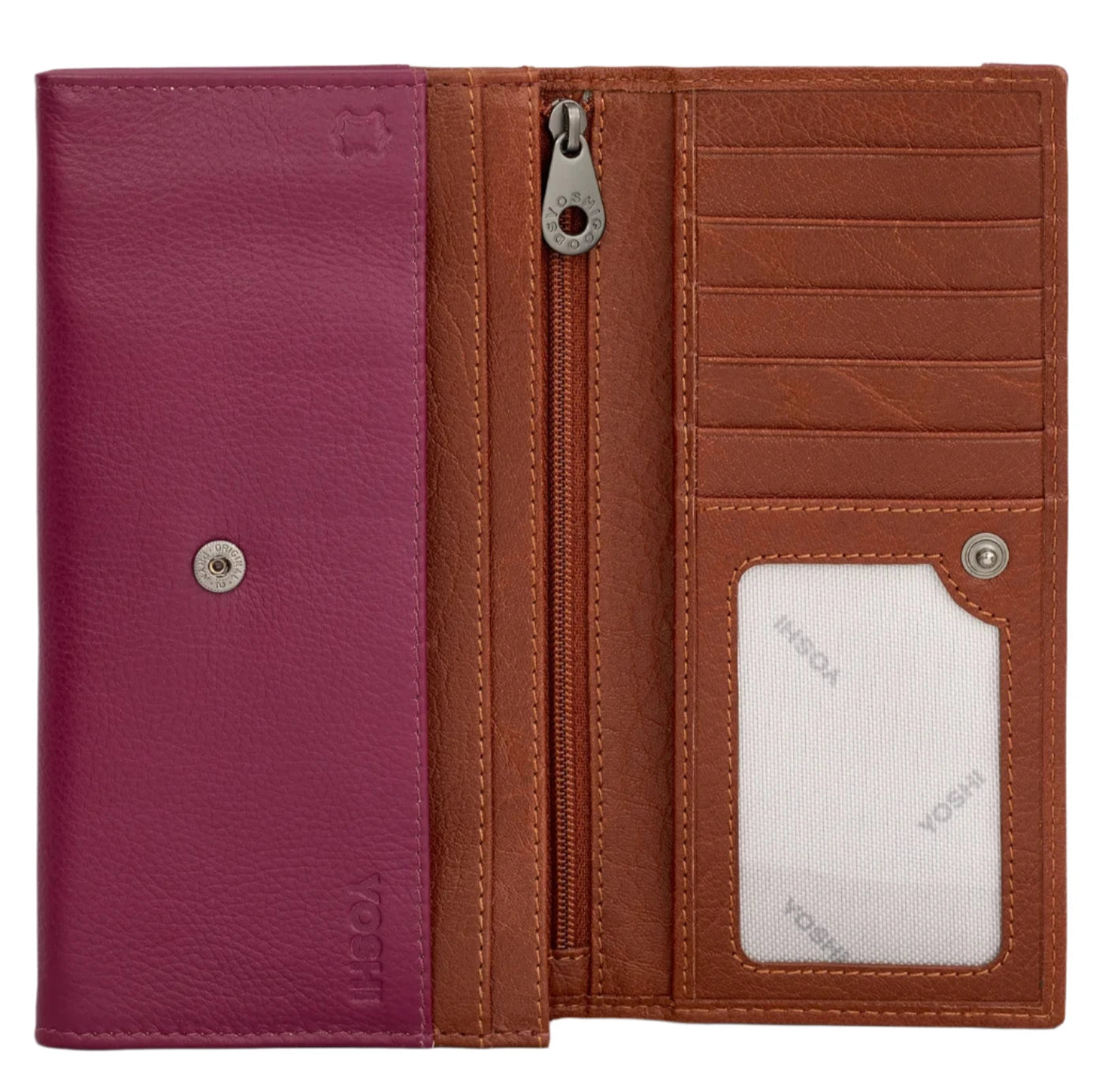 It’s been a summer of celebration so far and this jaunty, fun-loving gang are not planning to miss out on the front of this leather purse for women. These cool cats are feline fine with their laid back party style. The handsome Bengal keeps it sharp in his preppy tie, whilst the Devon Rex goes full on rockstar in retro star shades. This genuine leather matinee purse for women has RFID protection this traditional purse shape offers lots of room for cards, coins and notes.